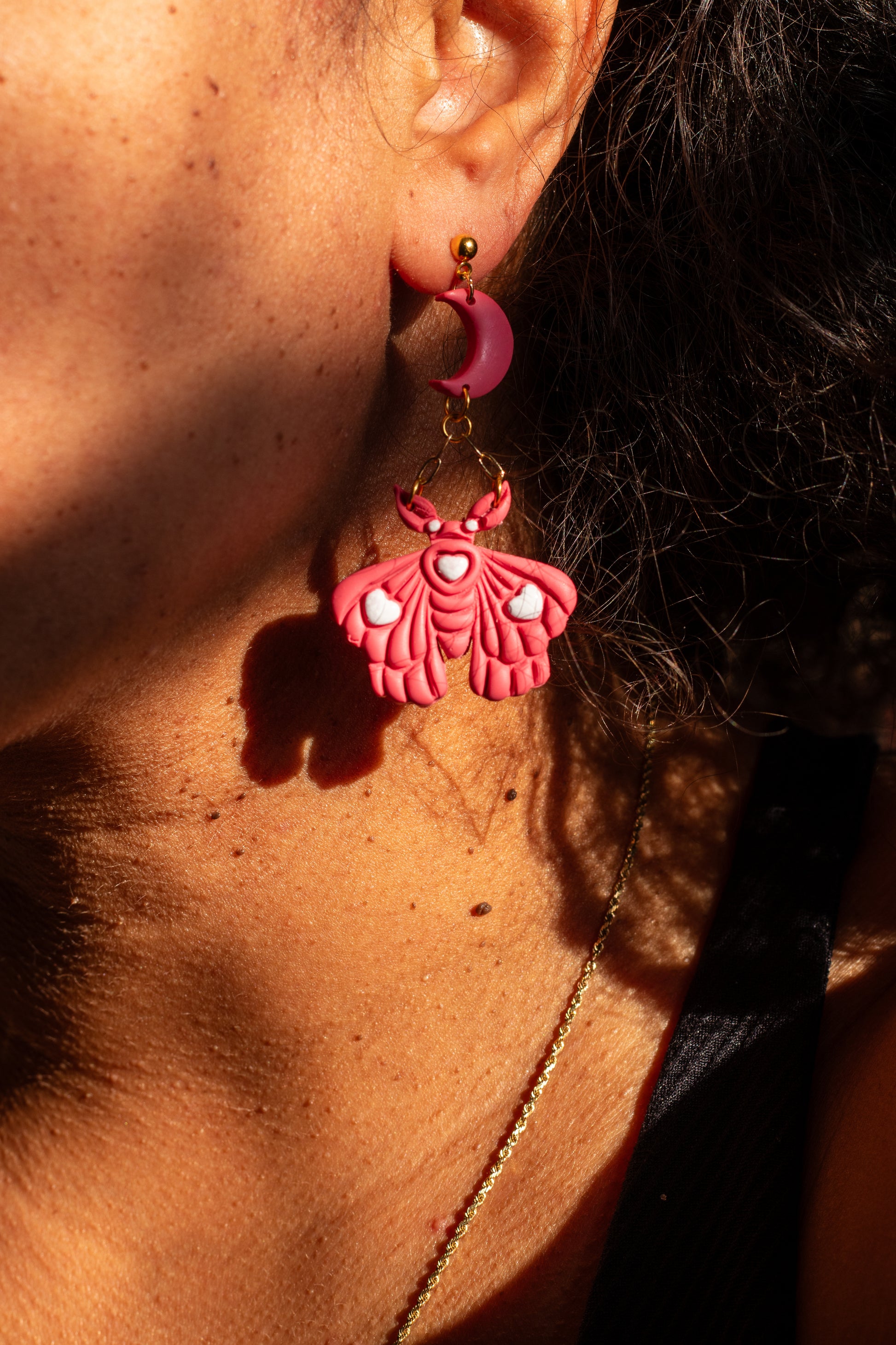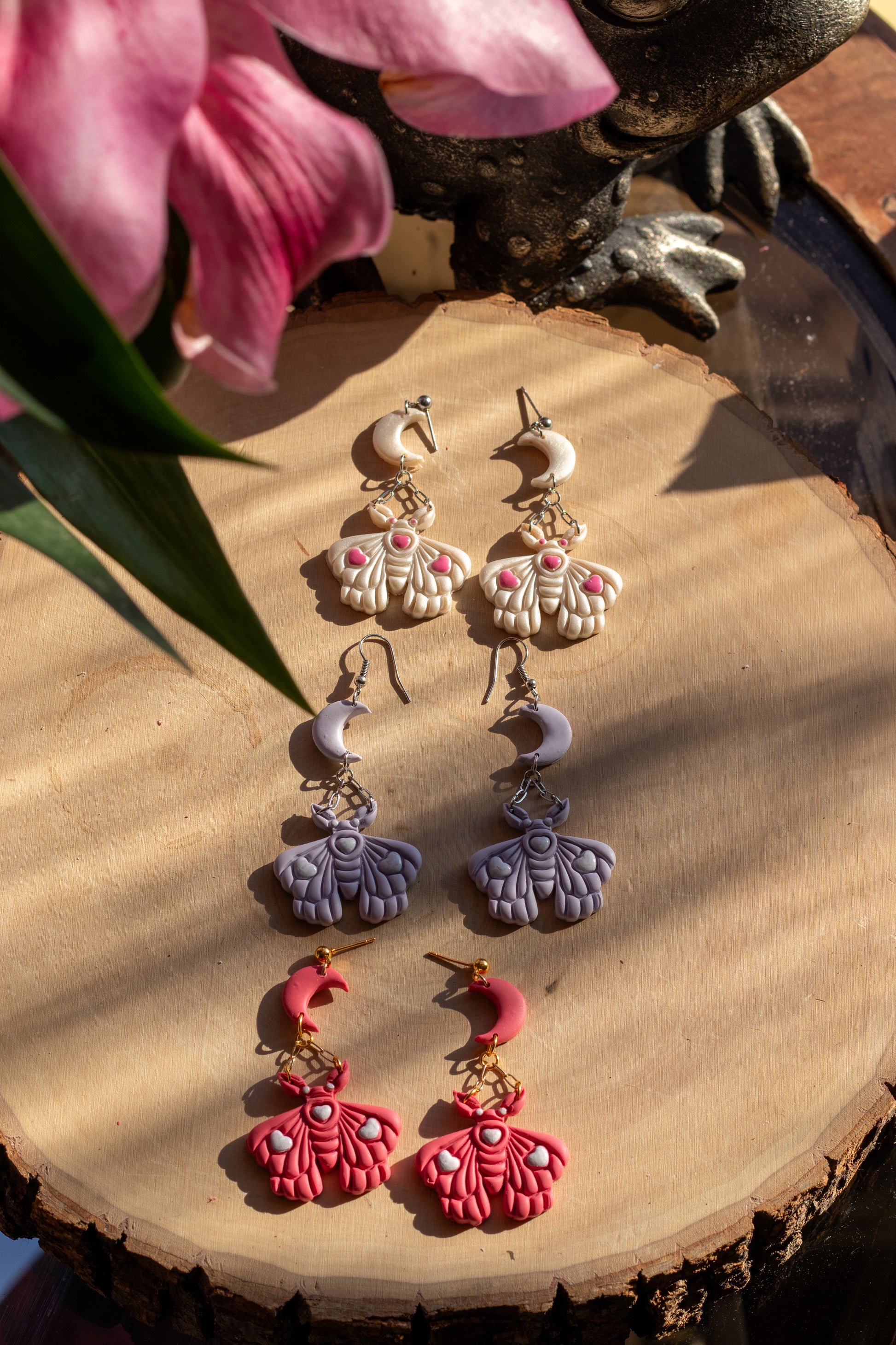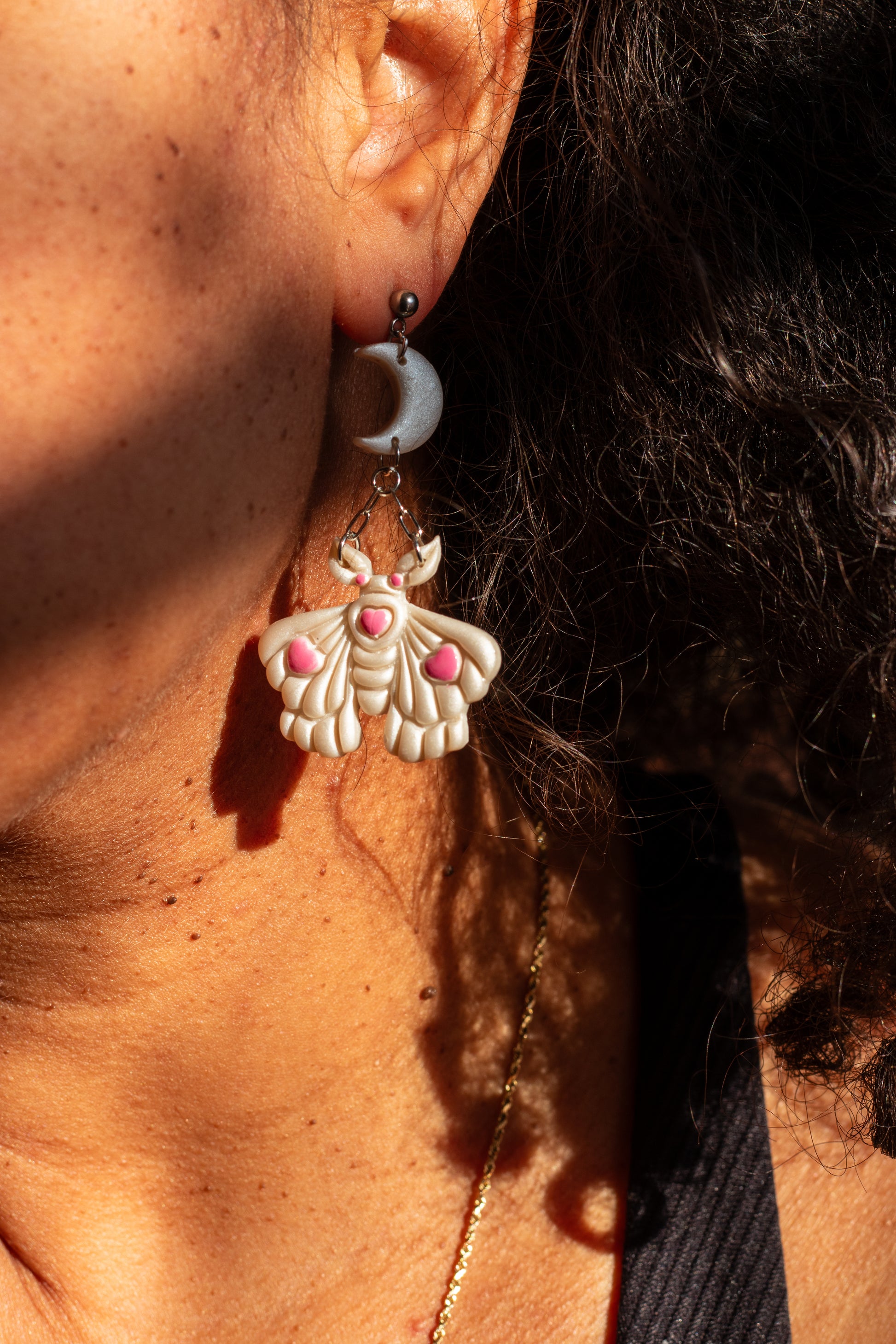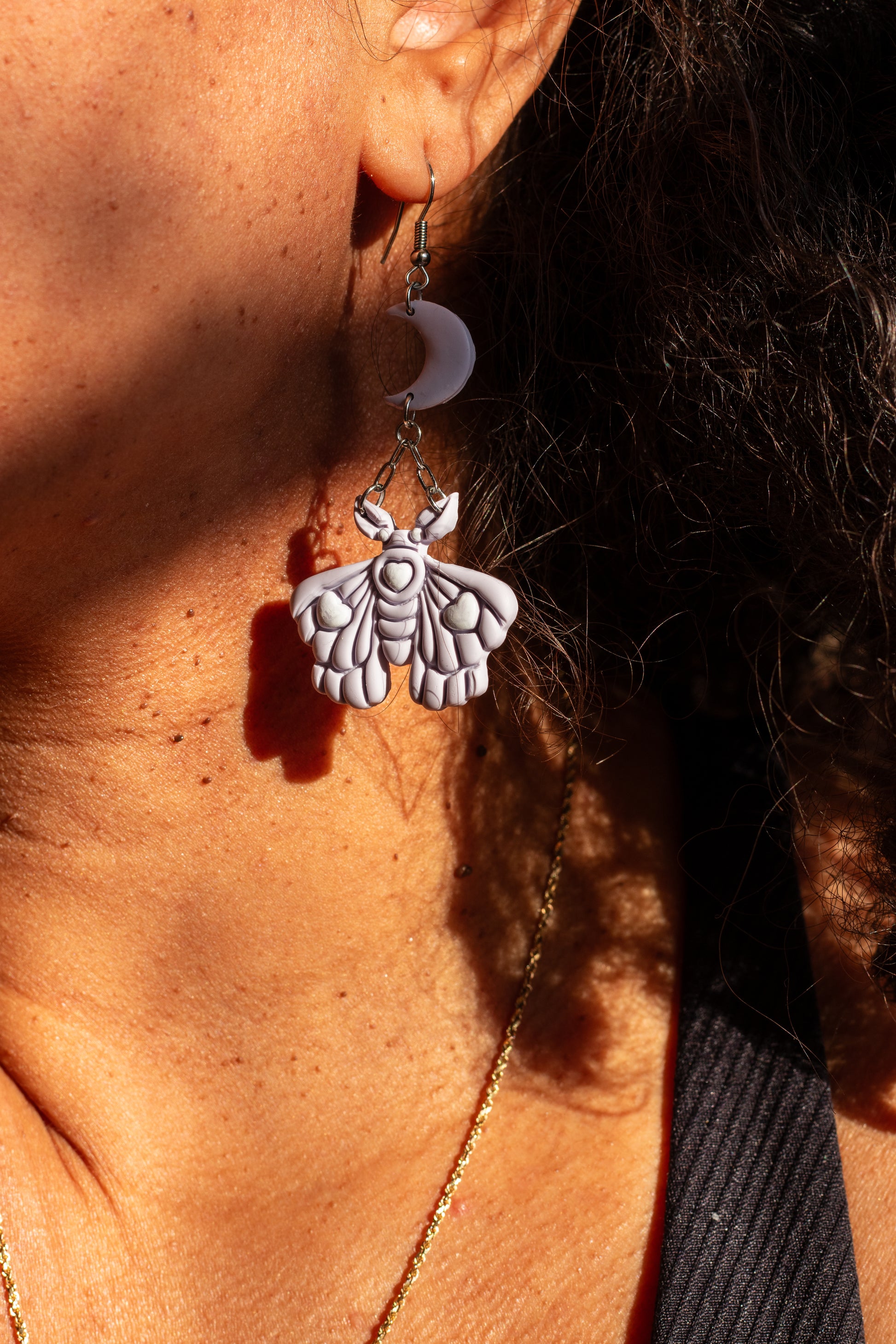 ☁️The inspiration behind this piece: There’s just something so whimsical and romantically tragic about moths (the common house moth is lowkey excluded) and I’ve been itching to make a moth themed pair of earrings since I opened shop. This is the first pair that I’m selling and let me tell you, I am in love (pun fully intended) with them.