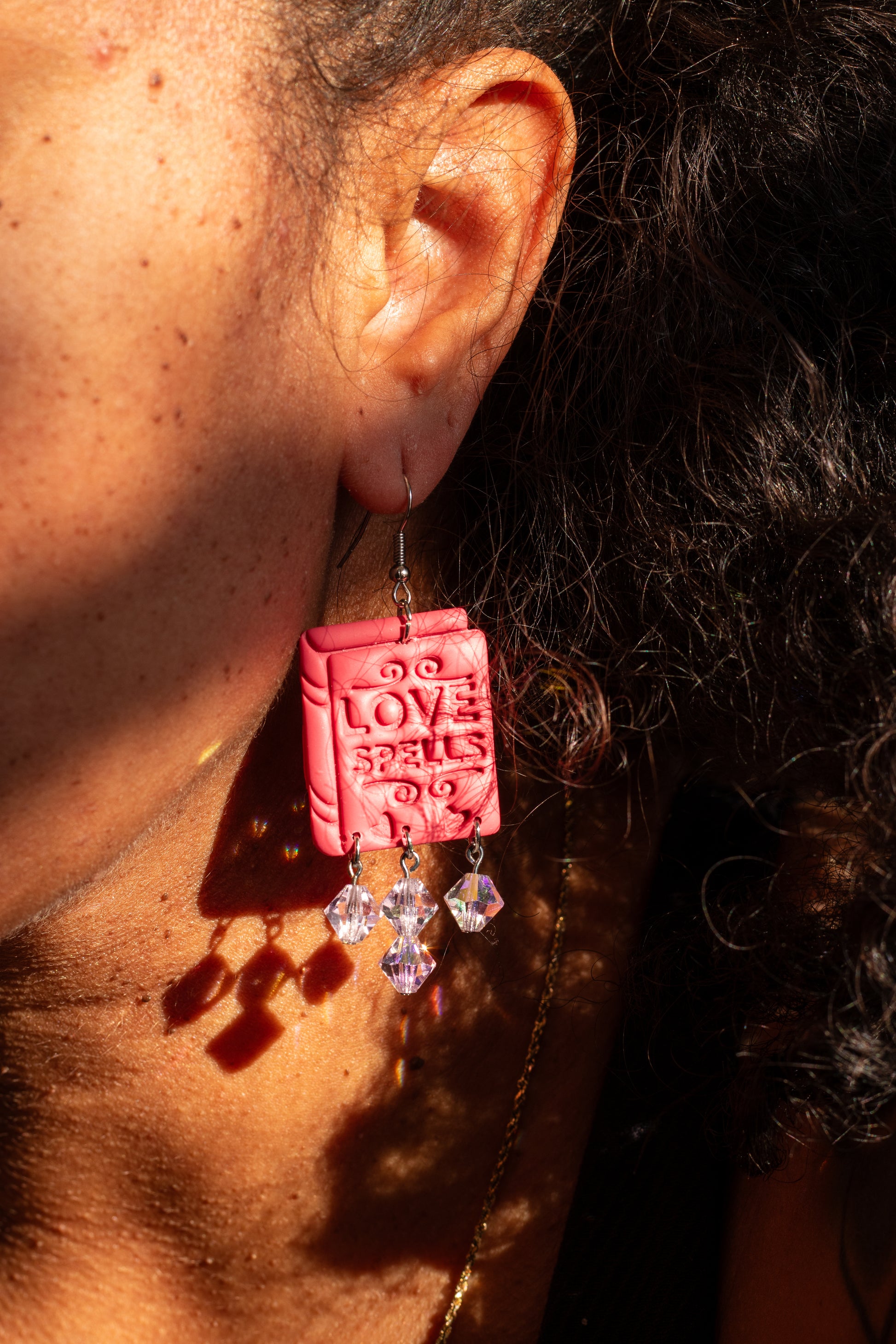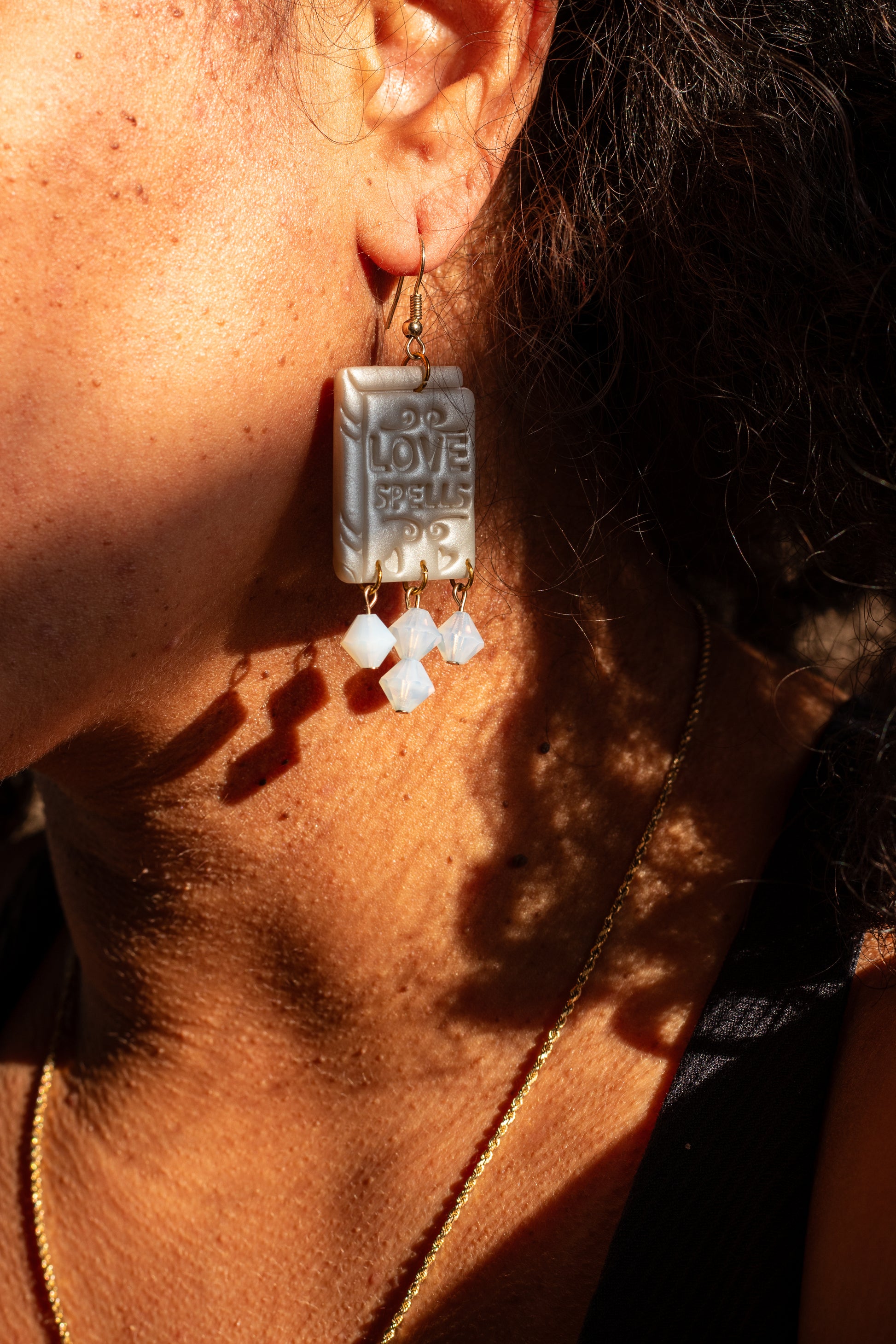 ☁️Inspiration Behind This Piece: I love books. I love spell books. I love love. I’ve always wanted to do a piece with bead dangles and this one was the design that I felt would benefit from them the most. Love spells are some of my favorite spells to read about either from a historical standpoint or in fantasy romance novels, so how could I possibly resist the chance to create my own Love Spells book earrings?