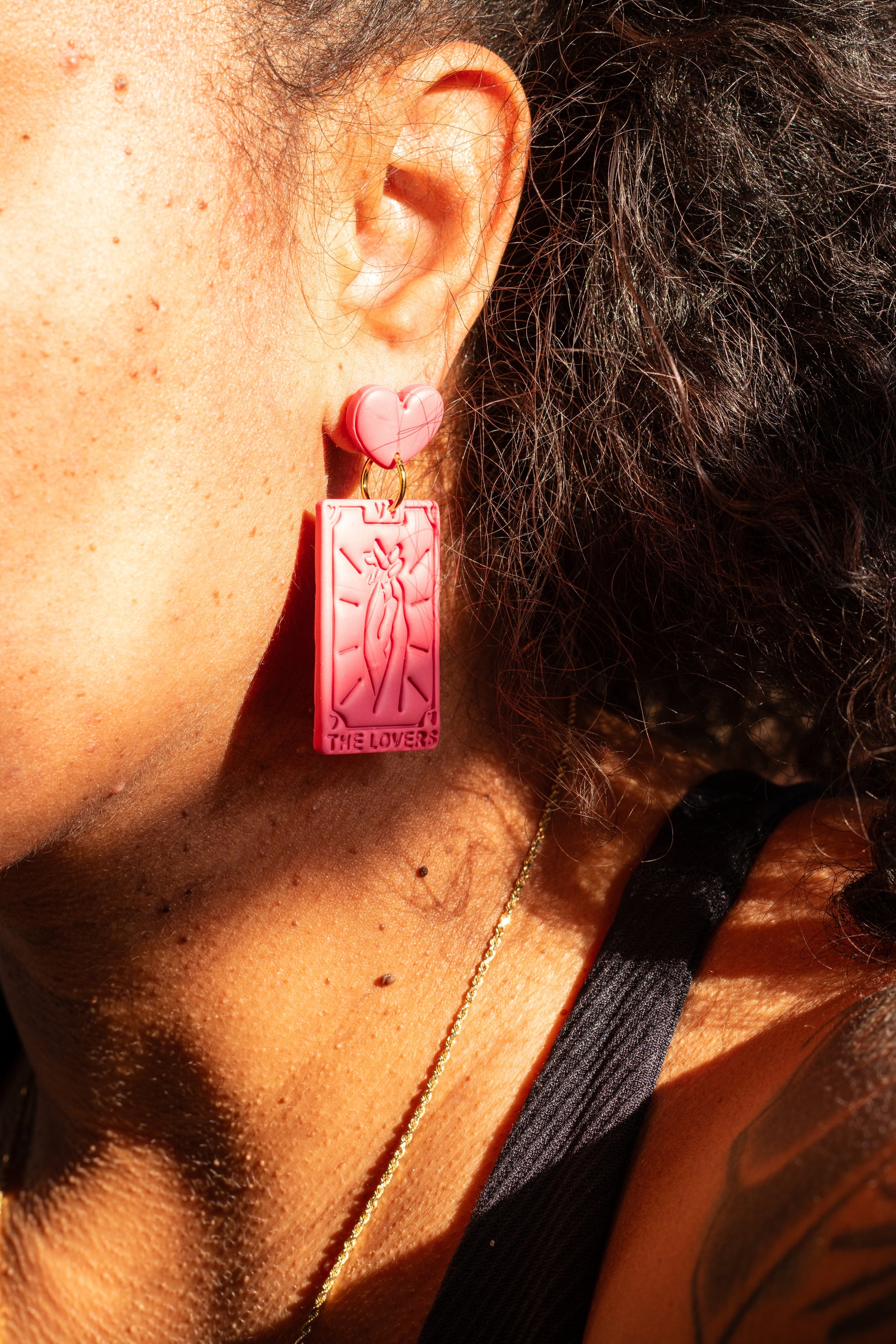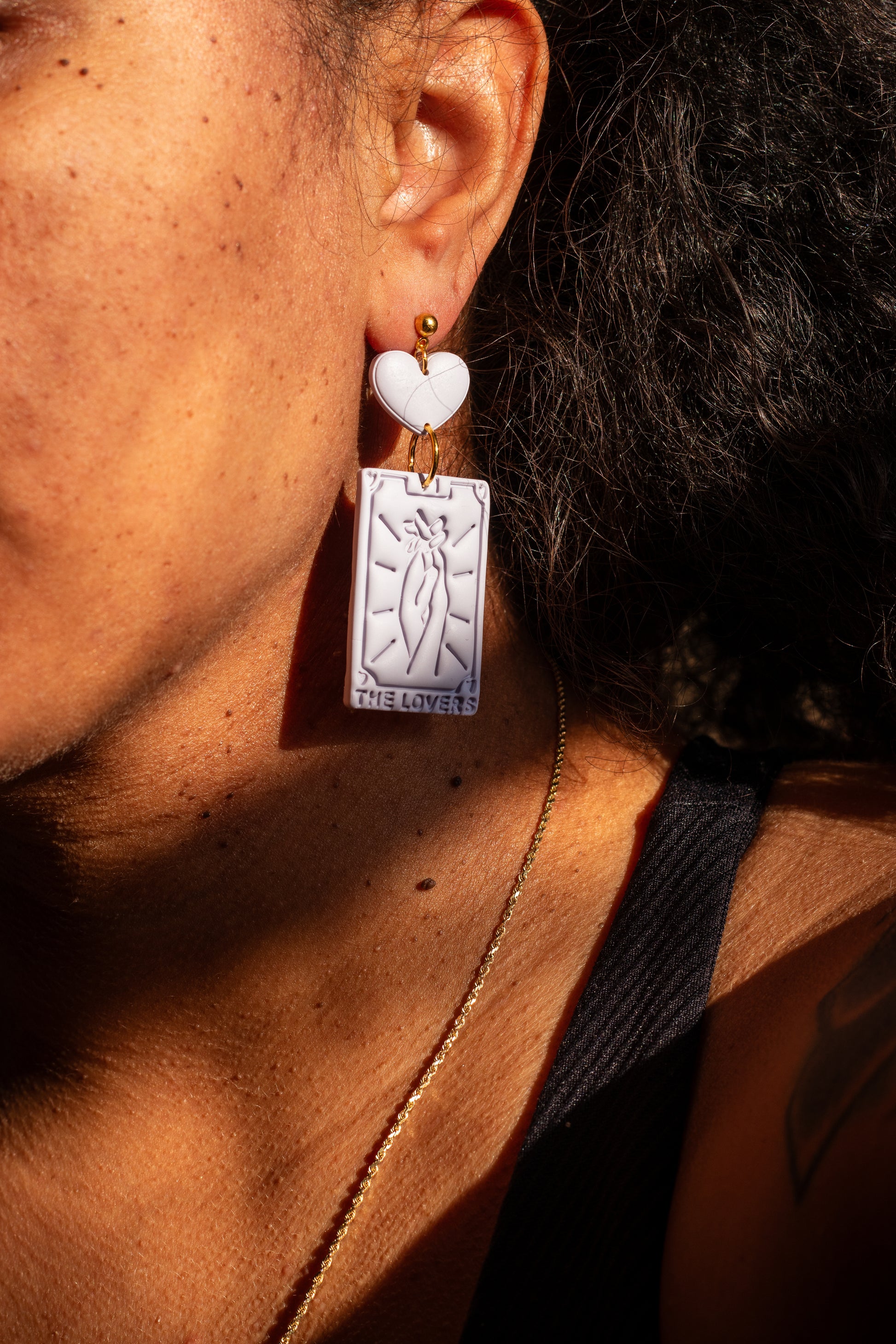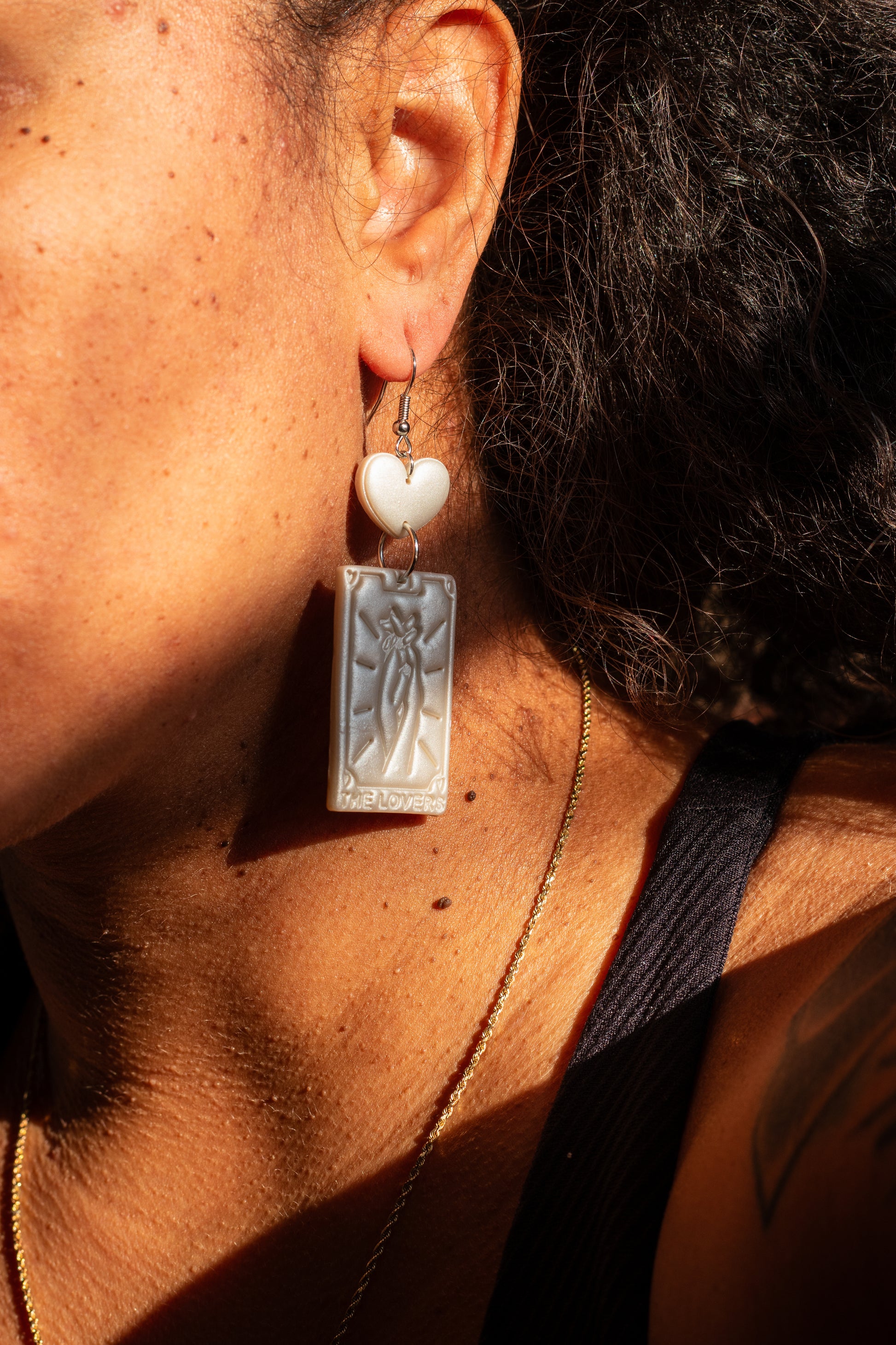 ☁️The Inspiration Behind This Piece: These earrings were designed with the love, harmony, and alignment aspect of the The Lovers tarot card in mind. I love a good tarot card design and couldn't resist creating something with this one.